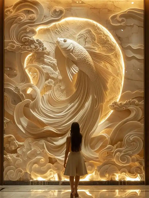 年年有余浮雕壁画_合肥大型墙面浮雕画定做3