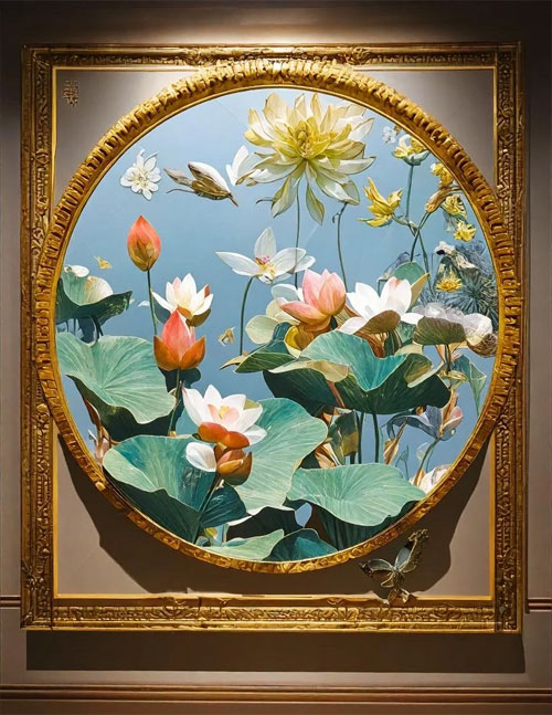 居家玄关浮雕画_荷花浮雕成品画_合肥皖韵画廊